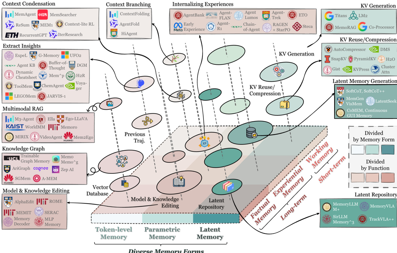 来自新加坡国立大学、中国人民大学、复旦大学、北京大学及合作机构的研究人员提出了一套完整的“形态-功能-动态”智能体记忆分类体系,通过识别词元级/参数化/潜在记忆形态事实性/经验性/工作记忆功能以及形成/演化/检索动态,推动基于大语言模型的智能体实现超越传统长短期记忆区分的持久化与自适应能力。