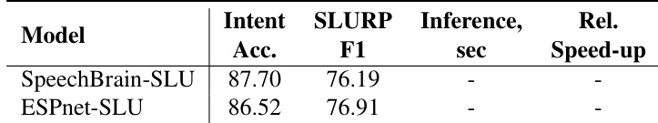 - For spoken language understanding (SLURP dataset), Fast Conformer-based models achieved intent accuracy and SLURP-F1 close to Conformer, with 10% faster inference, outperforming HuBERT-based baselines pre-trained on 60k hours of speech.