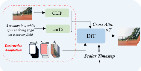 The authors leverage vectorized timestep adaptation (VTA) to overcome a key limitation in video diffusion models: the rigid, synchronized evolution of frames governed by scalar timesteps. Conventional models struggle with tasks like image-to-video (I2V) generation and editing due to this inflexible temporal structure, while prior solutions—such as task-specific fine-tuning or autoregressive designs—suffer from high computational costs, catastrophic forgetting, or limited applicability. The authors’ main contribution is Pusa V1.0, a non-destructive adaptation of the SOTA Wan2.1-T2V-14B model that replaces scalar timesteps with vectorized ones, enabling independent frame evolution. This allows a single unified model to achieve state-of-the-art I2V performance with 2500× less data and 200× lower training cost (500vs.100,000), while also supporting zero-shot capabilities like start-end frame generation, video extension, and text-to-video—all without retraining. Mechanistic analysis confirms that Pusa preserves the base model’s generative priors through targeted modifications, avoiding combinatorial complexity and enabling scalable, efficient, and versatile video synthesis.