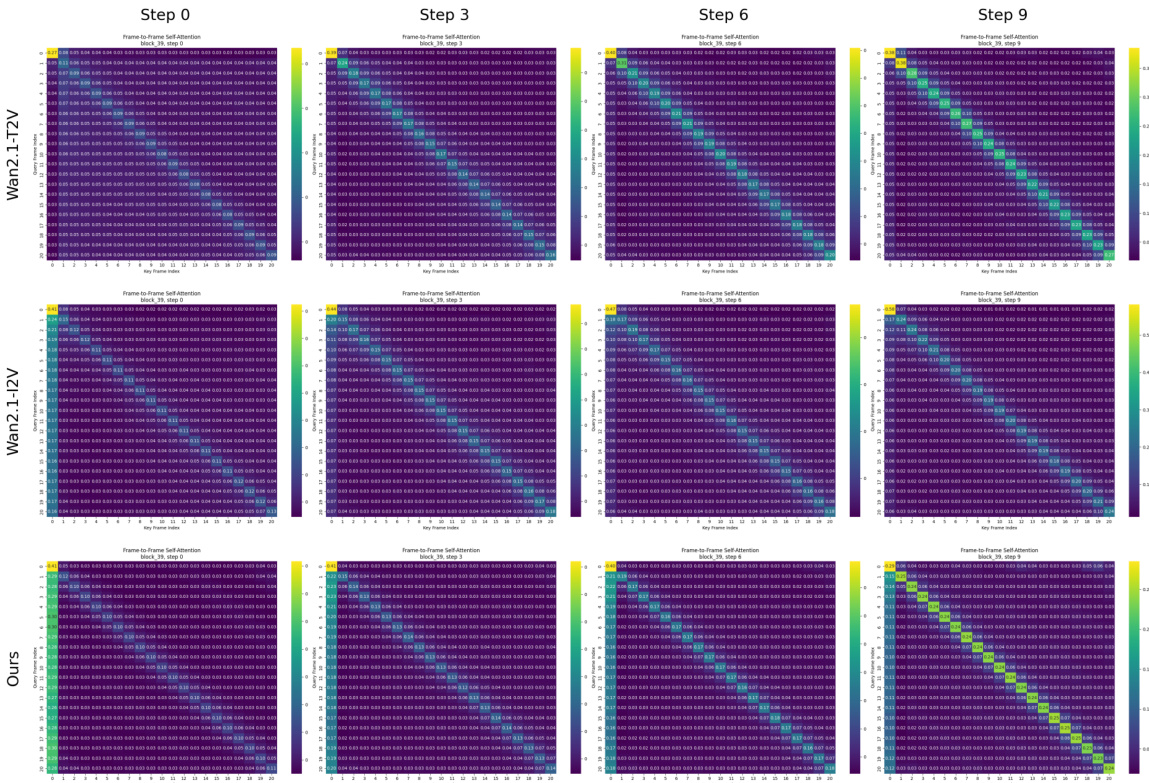 - Industrial-Scale Efficiency: Pusa achieves unprecedented data efficiency (≤1/2500 of Wan-I2V's dataset size) and computational efficiency (≤1/200 of Wan-I2V's training cost) through lightweight LoRA fine-tuning on a large foundation model, enabling practical large-model adaptation.